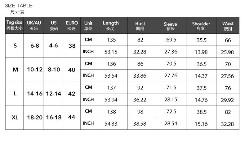 - Sleeve Length: Long sleeve